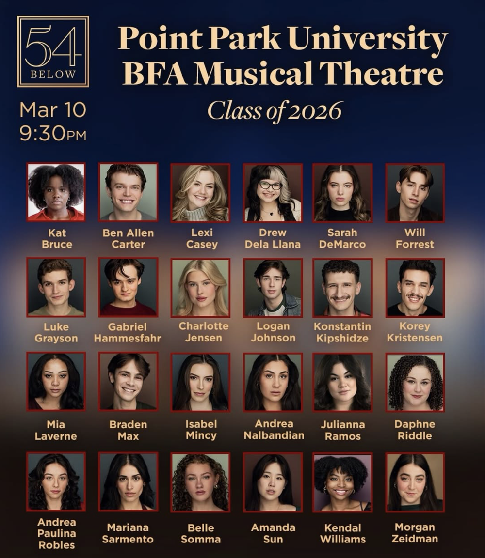 I am incredibly grateful for my training in the Conservatory of Performing Arts at Point Park. Over the past four years, I have been shaped by the rigor of an exceptional musical theatre program. My daily work in voice, acting, and dance has taught me not only technique, but trust in myself as an artist. These years have been foundational in shaping both my confidence and identity as an artist, and they continue to inspire my commitment to growth, storytelling, and excellence.